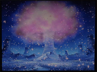(モニター上にピンク色の雪が降り注ぎます。)