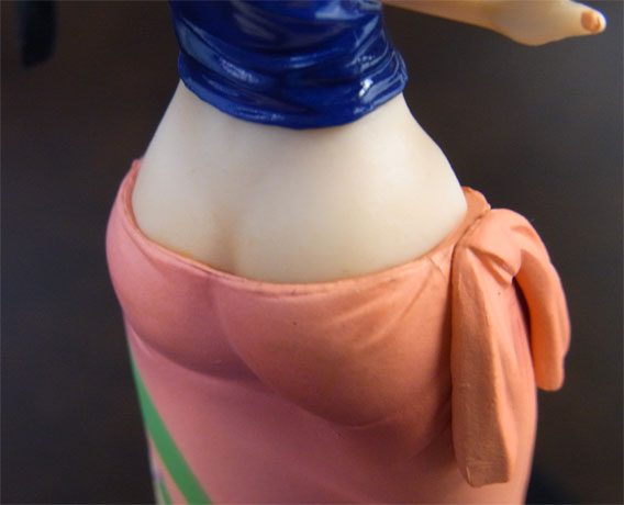 残念なことに、スカート部分(半ケツ)から半身は一体型の別パーツになっておりキャストオフみたいな芸当はできず、めくったところでそこにお尻はありません・。・ 足は膝下がスカートから生えています。