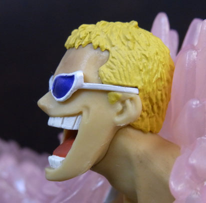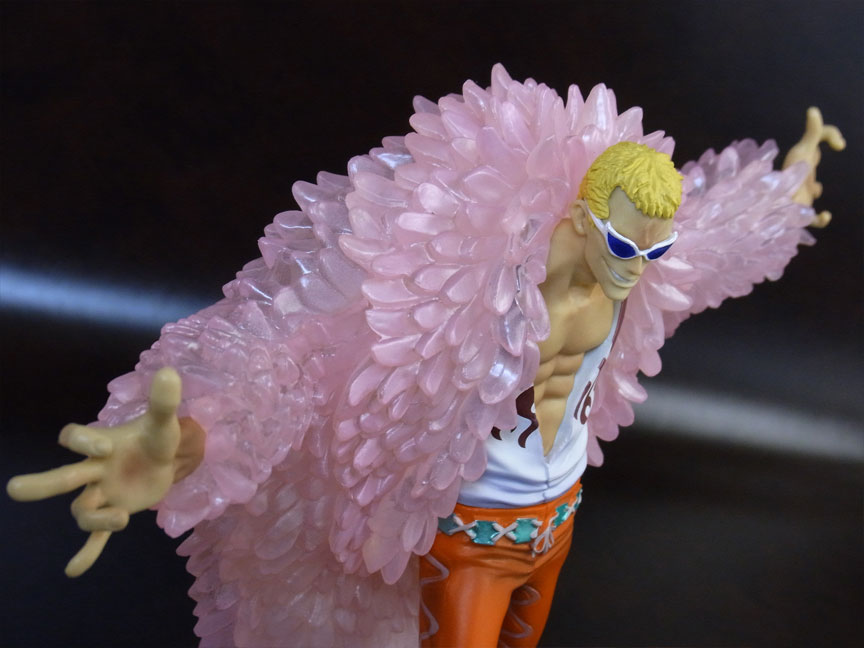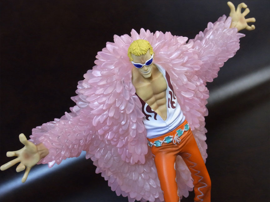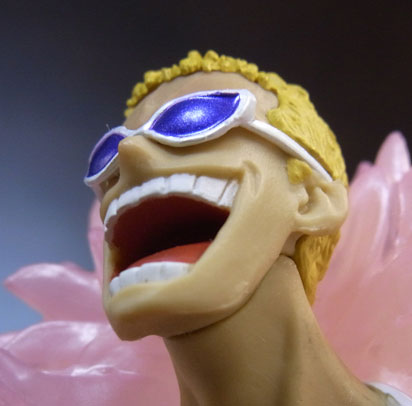 ドフラミンゴらしい高笑いの表情。差し換えパーツのため首にパーティションラインが入っているのが少し残念。
