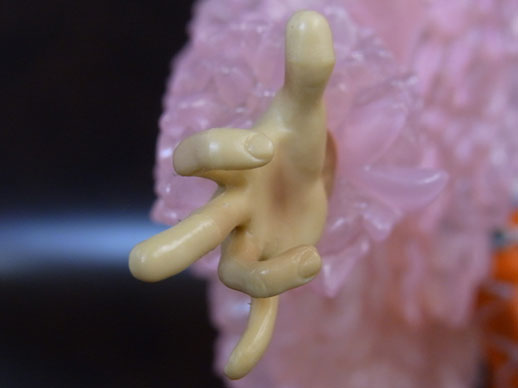 コートはクリアパーツ(薄いピンク色?)になっており、所々ピンク色がのってます。使用されているのは一色だけですが、濃淡で単調にならず、光の反射も相まって複雑な色合いになっています。この辺が写真でおそらくうまく伝わらないと思います。
