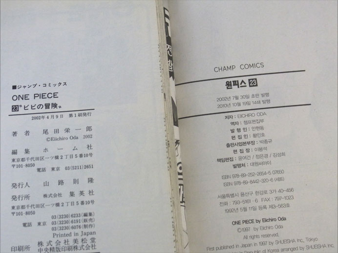 韓国版23巻の価格は4,500ウォン(約300円)。