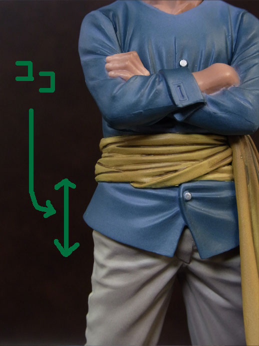 服の皺は面が広くて角ばっており、硬い印象を受けます。フィギュアなので、実際硬いわけですがw