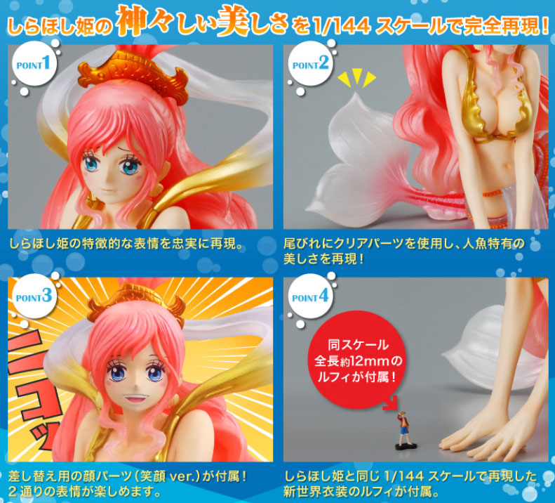新世界衣装を纏った約全長がわずか約12mmのルフィも付属します。さらに『しらほし姫』の