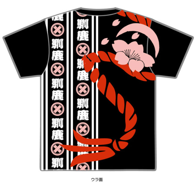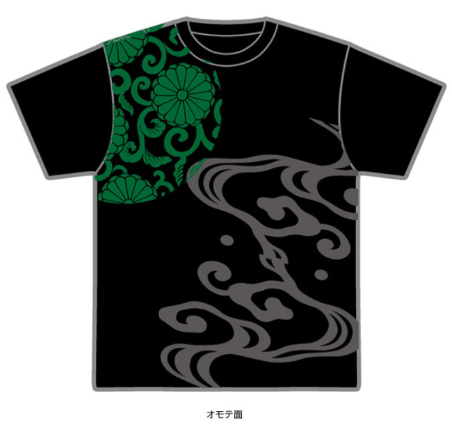 家紋デザインをTシャツ全面に配し、ワンピースの世界観と調和して一体となって粋な雰囲気を醸し出しています。