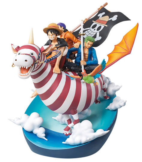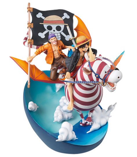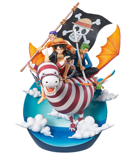 画集「SHARK」より人気の高いイラストを選出し、脅威のクオリティで再現!浮遊感や距離感などもさることながら細かなパーツ一つ一つにまで余すことなく造形力を注ぎこんだ出来にご注目ください。ルフィ、ゾロ、ウソップが大空を翔る超人気イラストを隅々まで再現した、まさしく贅沢な「逸品」となっております。