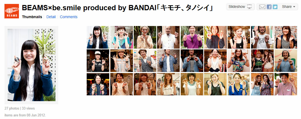 当企画ではビームスショップ店員が両手にone piece@be.smileを持って笑っている写真を、写真共有サイト「flickr」から発信しています。コラボテーマの「