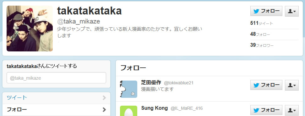前回の芝田さんのように扉絵リクエストについてツイッターで言及は一切されていませんが、フォロー・フォロワーリストの中にはその「