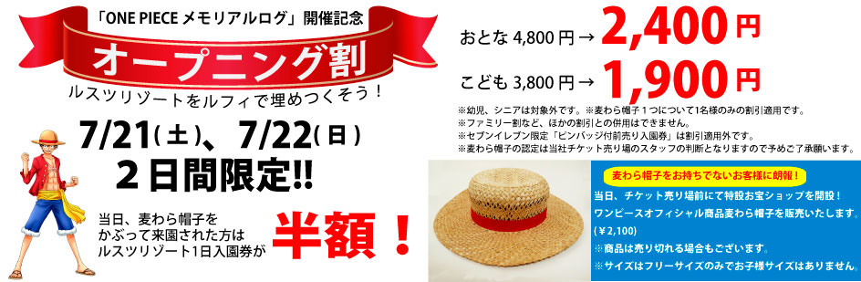※7月21日と22日はオープン記念で麦わら帽子をかぶって入園すると入場料が半額