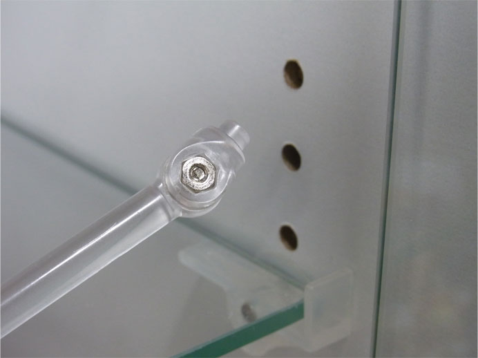棚留め具用の穴に挿してディスプレイしてみました。