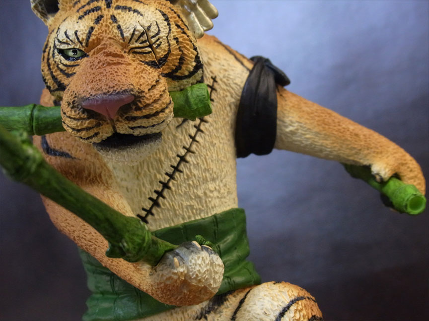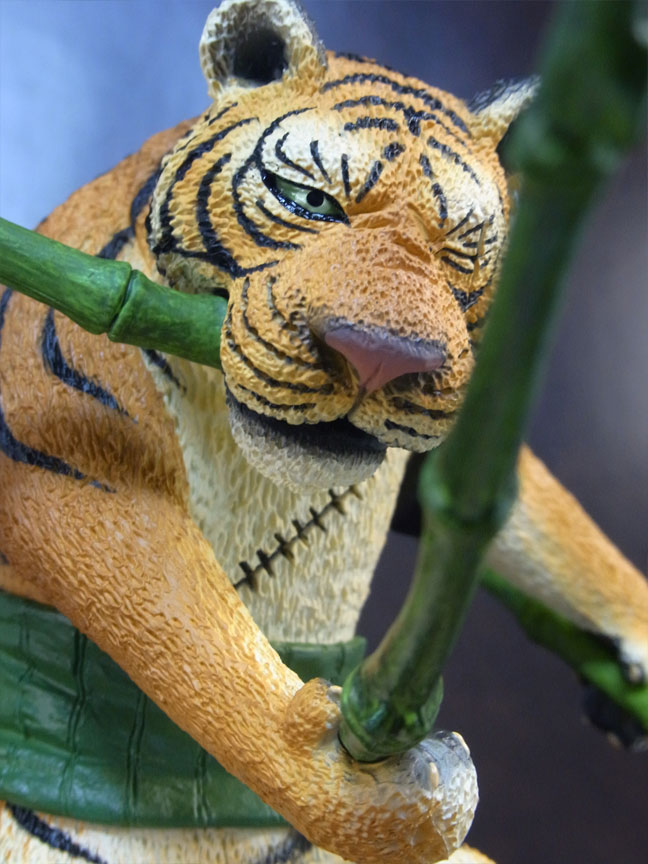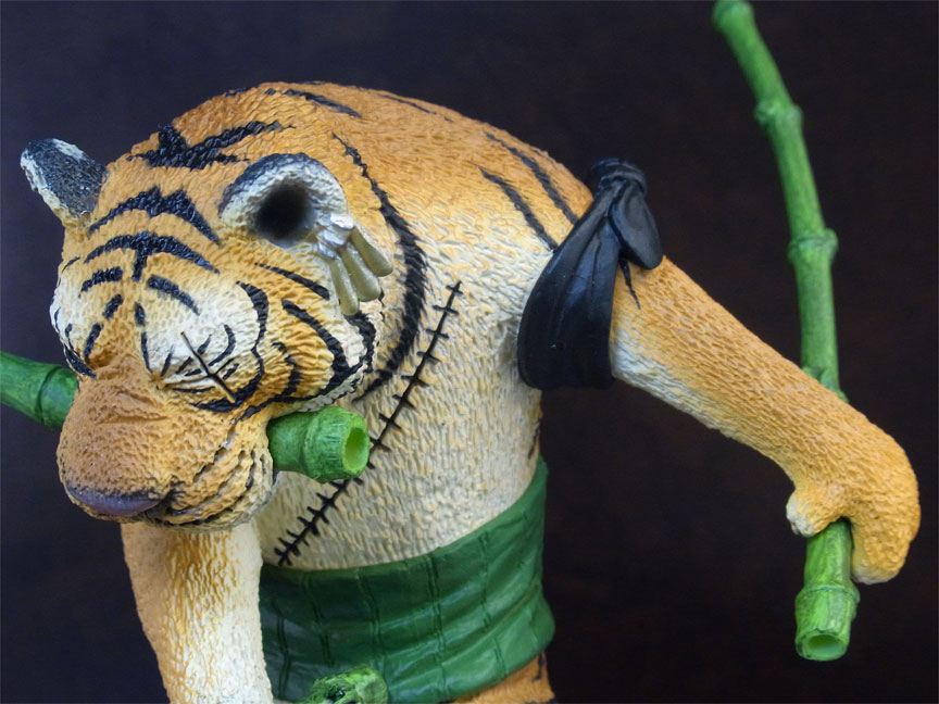 竹はダボがついており、手と口にあるダボ穴と接着する仕様です。竹の塗装は筋張った質感は表現されていますが、見方によっては雑な印象です。
