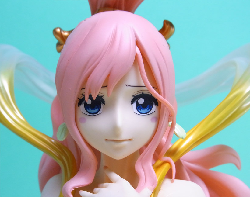 表情はデフォルト、差し替えともによく似ており、どちらで飾ろうか迷ってしまうほどです(でも、やっぱり笑顔かな)。スケールはしらほしフィギュアの中で最大級ではありますが、コンパクトなポージングのおかげでスペースは思ったほど取りません。なおかつ、ボディのプロポーションは良くと・・・いいこと尽くめ。かなり気に入っています。