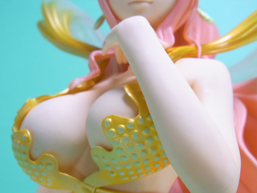 ブラの羽衣部分は別パーツになってます。元々、開封後に取り付けるパーツであることと、色調が分割の境界で異なるため、