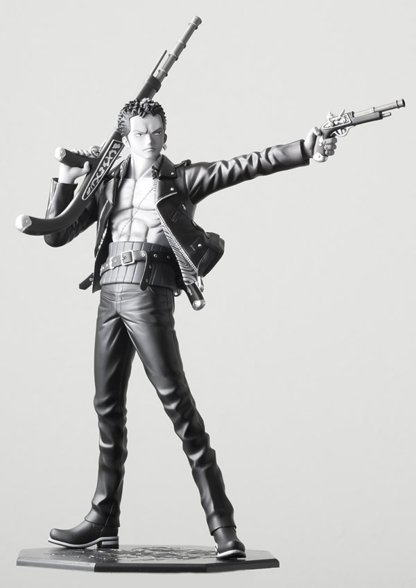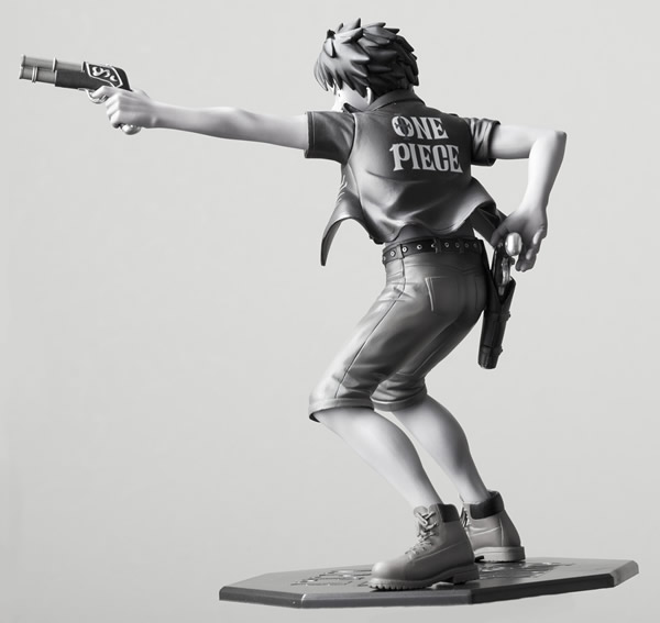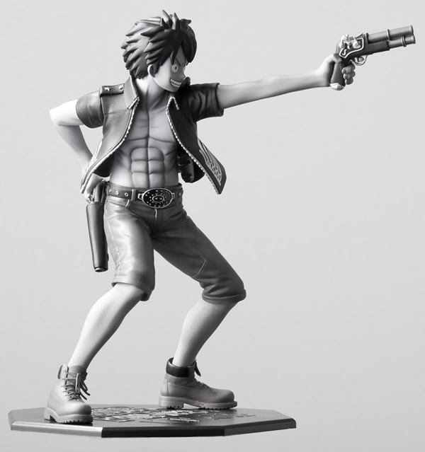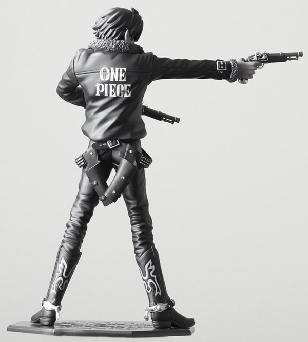 「ONE PIECE」ロゴがシルバーでペイントされたライダースを背負った特別仕様の三人は三体同時
