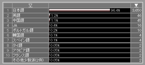 あと、これは謎なのですが、なぜか言語圏の解析で英語ユーザーが増加しています。謎です・。・
