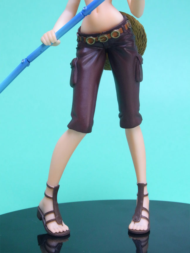 真の魅力は後ろ姿にあり、というわけで後ろ向きに飾っていればタトゥーが無いことや顔が似ていないのは目に入らないので気になりません(ミラー背面のコレクションケースはアウトですがw)。実際のところ、この内股と腰のひねりが入ったような立ち姿は、原作においてエネルと対峙した際に描かれていないのですが(おそらく連載を通して描かれてはいない)、カワイイから許すといった感じです・。・