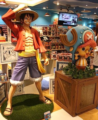 ショップの入り口にはルフィとチョッパーの等身大(より一回り大きめ)フィギュアがお出迎えだお