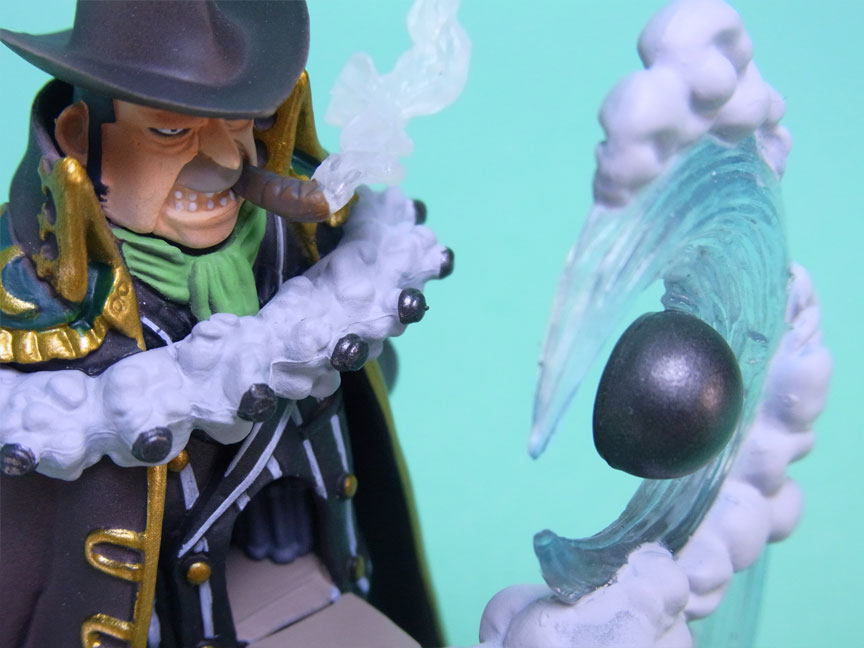 ベッジは体が城のようになっている不明能力者。流石に、お腹の城門の鎖や胸の砲門の造形はありませんが、せめて開いた城門の表側の塗装はして欲しかったところです。まぁ、普通に飾っていれば見える箇所ではないのですけどね・。・ また、砲弾の煙はクリアパーツにした方が見栄えが良かったかもしれません。