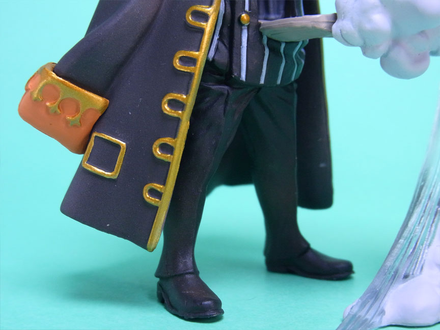 こんな技あったっけ?と思ったのですが、ポージングは505話の戦闘シーンの再現のようです。バク宙しながら腕の武器を回転させて海兵を斬っているところです。