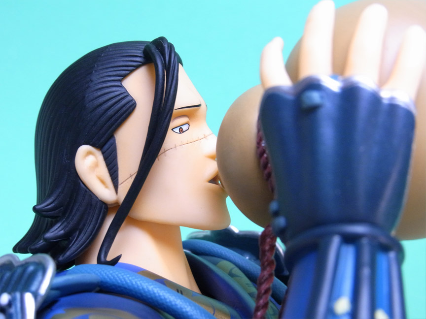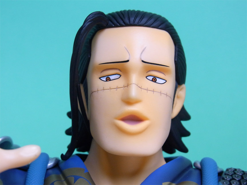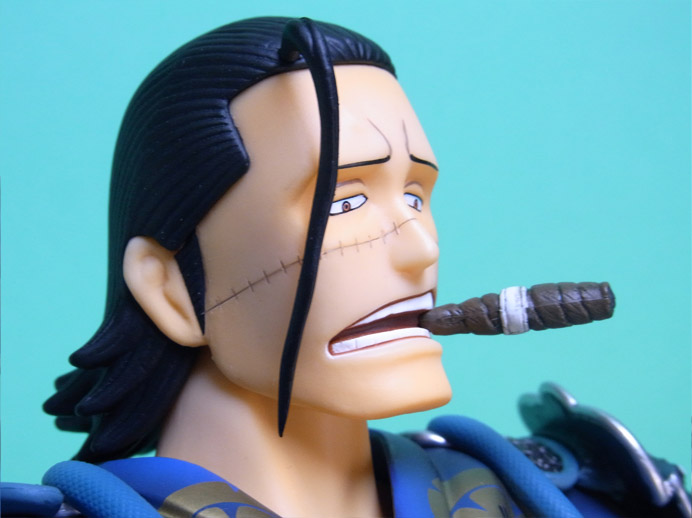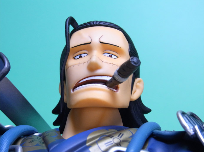 差し替え表情は葉巻をくわえたクロコダイルらしいもの。正面から見る分には似ていますが、こちらもやはり皺が少ない印象です。前髪の触覚は、デフォルトの頭部と比べてマイナーチェンジしています。