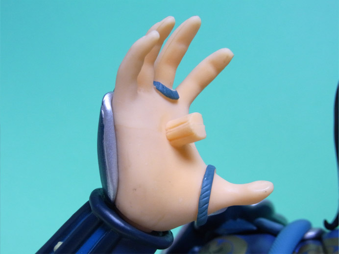 瓢箪は右手のダボと接着し、飲み口を口先に当てることで固定される格好です。手の平の1点でのみ接着しているため、指が瓢箪から浮いてしまうのが難点です。
