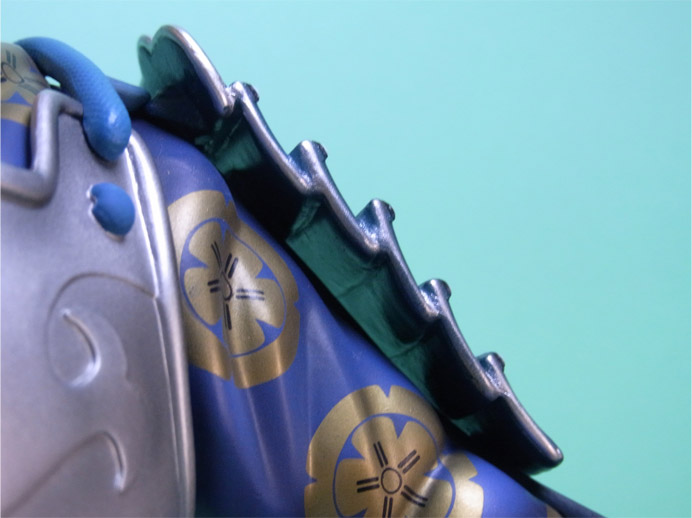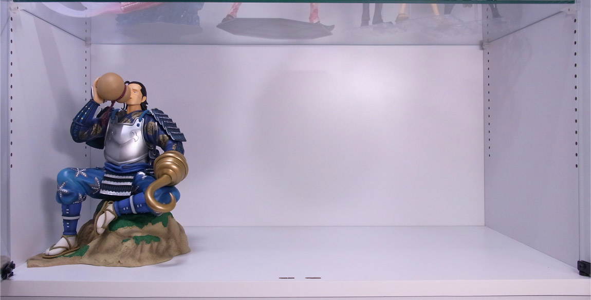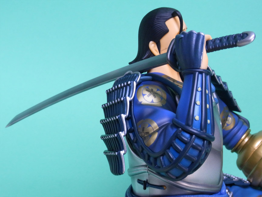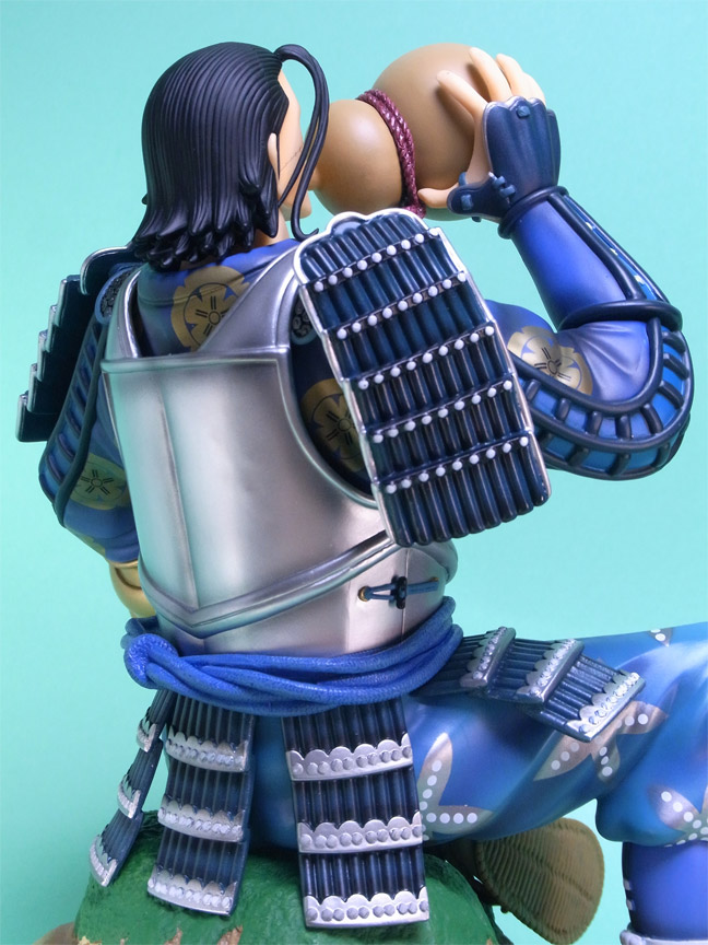 迫力のサイズです。実際に本体は重く、コレクションケースに入れて飾った際の存在感は目を見張るものがあります。格好が格好だけに、まるでちょっとした「五月人形」感覚ですw