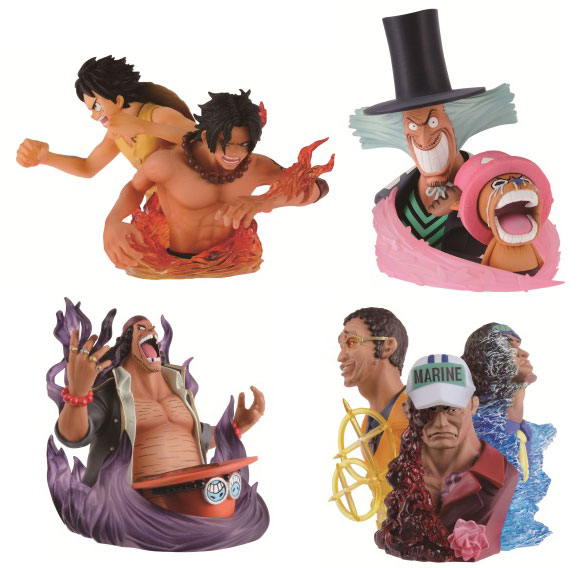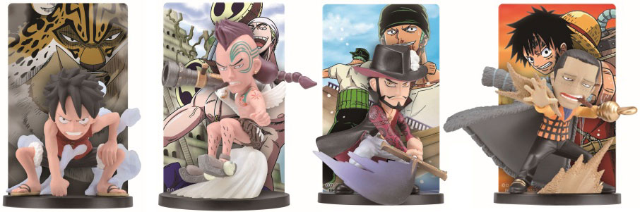 空島編、ウォーターセブン編、イーストブルー編、アラバスタ編の4つのストーリーからキャラクターを抜粋し、カードスタンドフィギュアで再現。カードには対になるキャラクターをデザイン。