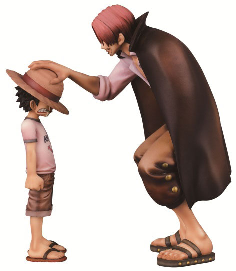 「シャンクス」が幼少期の「ルフィ」に麦わら帽子を預ける名シーンを立体化。表情や洋服のシワなどを細やかに再現。