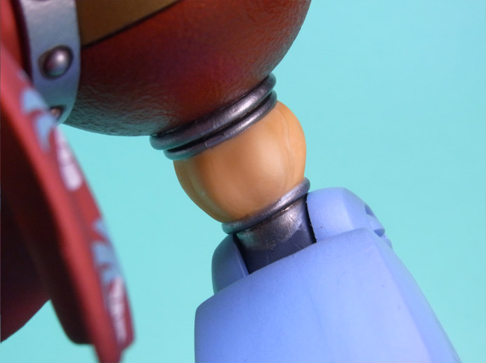 挿げ替えは頭部のボールジョイントを写真(左下)のように倒すと、グラメンの