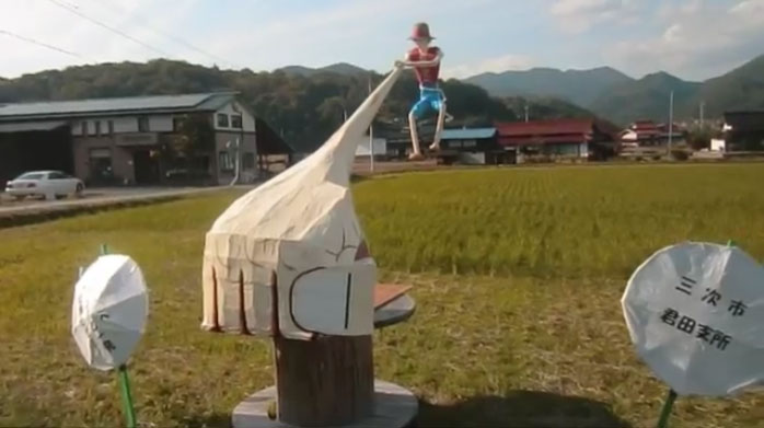 かかし祭」が行われていました。旧君田村時代から続くこの「町おこし」行事には、市内の小中学校や町内の団体・個人が参加。