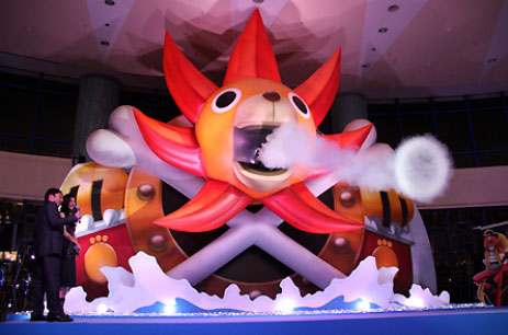 ※高さ約7メートルのサウザンド・サニー号が展示。毎日11:30と12:00以降1時間おきにロングバージョンのイルミネーションショー、12:30から1時間おきにガオン砲発射のショーを実施。