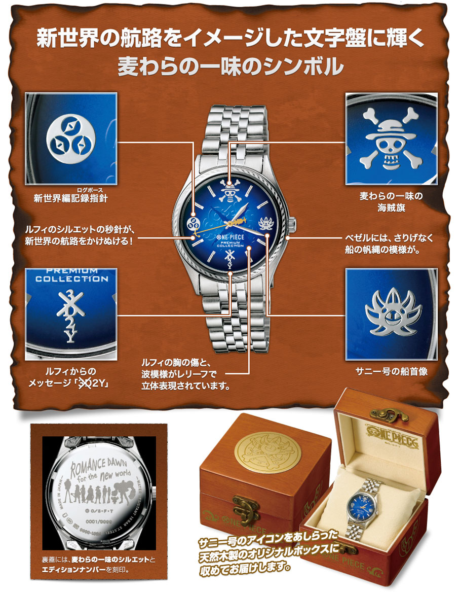 麦わらの一味のシンボルを配した“新世界編ウォッチ”。