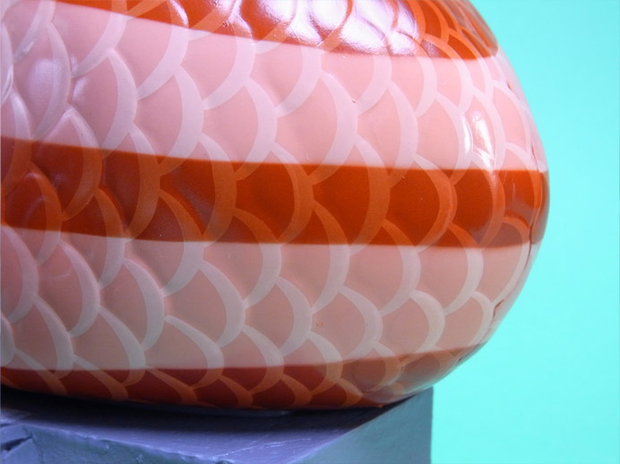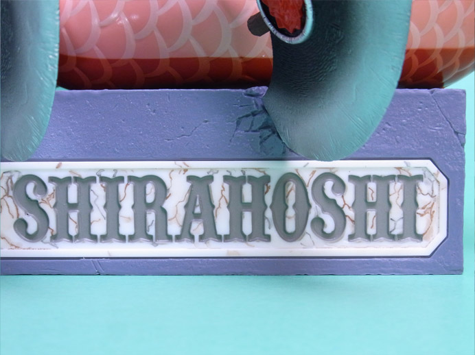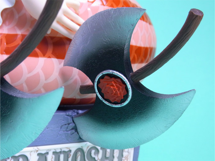 原作絵を忠実に再現した塗り分けです。これは他のシリーズでは実現できていない(価格的に)ハイレベルな塗装で、はみ出しもなく完璧。折れ曲がっているところではウロコが詰まっているなど芸が細かいです。つやありの塗装も魚っぽくていいですね。