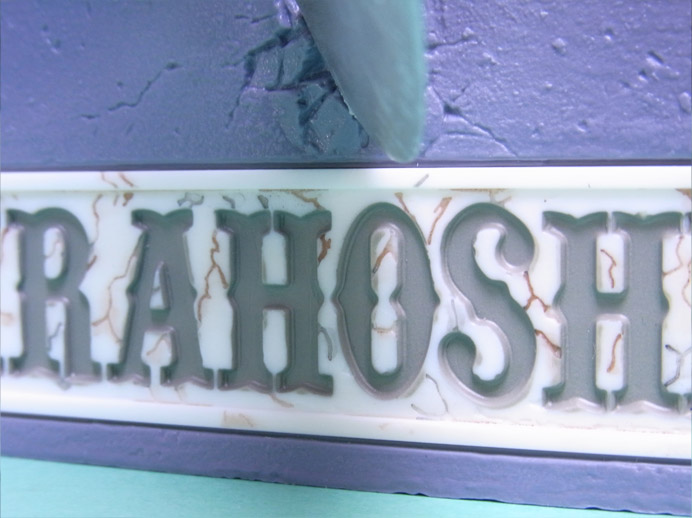 ウロコの1枚1枚がちゃんと造形されています。また、折れ曲がった箇所にはパーティションラインがありますが(右上)、正面から見た場合は全く目立たないので問題ありません。