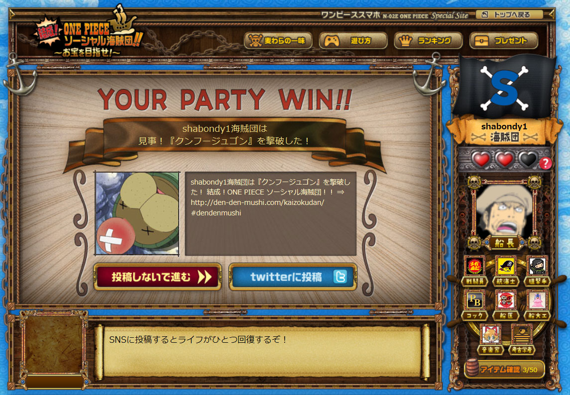 ワンピーススマホ(N-02 ONE PIECE)」公式サイト内のソーシャルゲームコンテンツ「