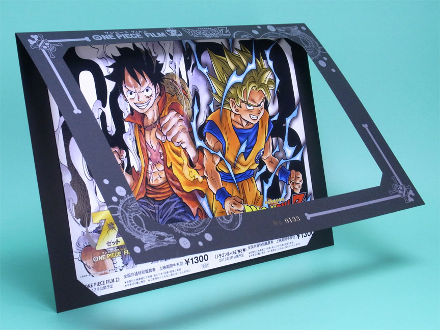 見た目にも写真でも分かりづらいのですが、ルフィと悟空及び映画ロゴは