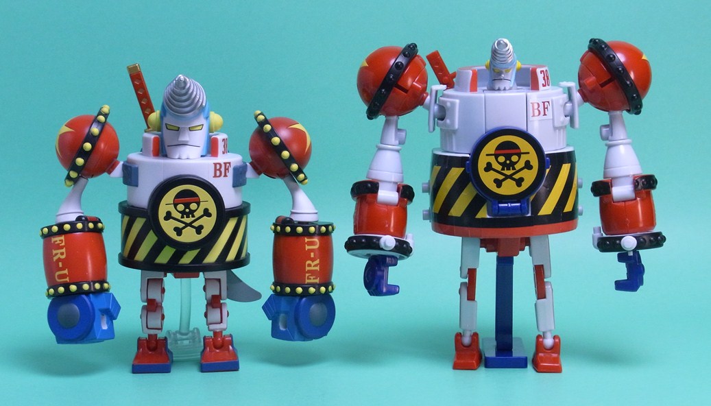 アニメ準拠になっているのはどちらも食玩の方です。股間のパーツが赤く、ボディの下部も赤くなっていることで、相撲の廻しに見えるところがフランキー将軍のチャームポイントだと思っているので、この点は重要です。