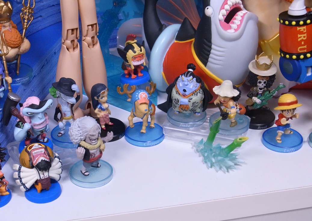 PVC製の麦わらの一味ミニフィギュアが付属。ロボに興味がない女性陣を除いた野郎共だけというのが面白いです。チョッパーはブラキオタンクの司令官になった時、フランキーは”フランキー大砲”、ルフィはロボに感動した表情、サンジは片足を上げたポージングで自立しているなど、