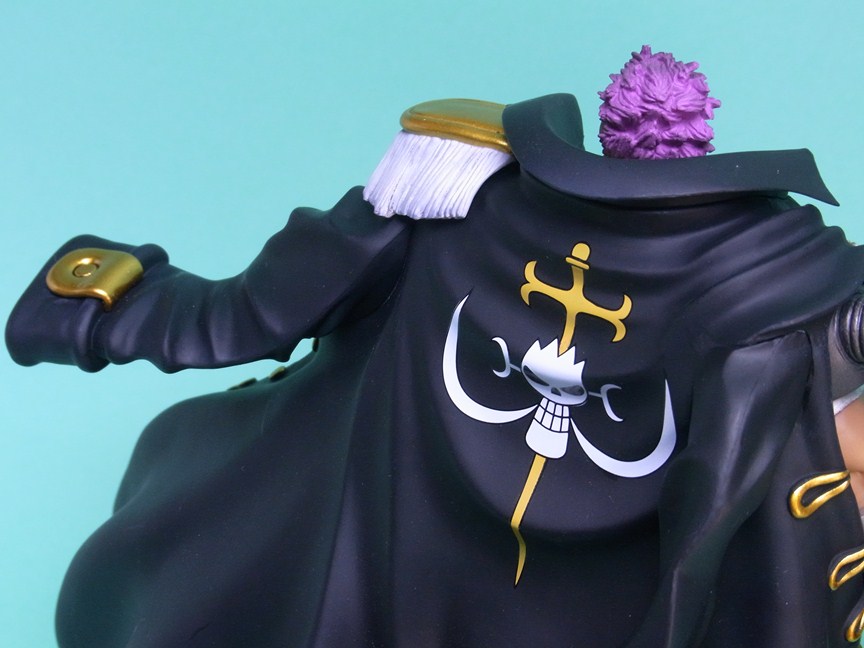 NEO海軍コートでも言うべきか、黒いコートは樹脂色ほぼそのまま。単純にたなびくコートの造形が格好いいです。裏地は赤く塗装。金具および金色の装飾部分は