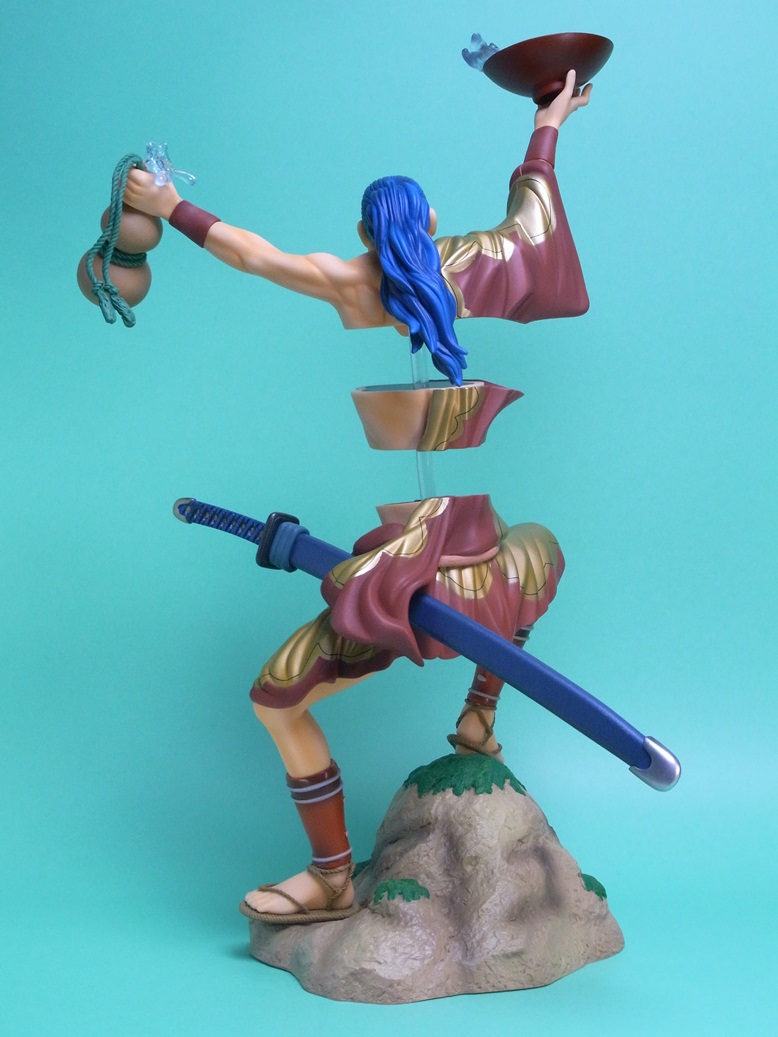 水色のクリアパーツで再現、零れ落ちそうになっているのはフィギュアオリジナルですね。盃はつや有り塗装の方が雰囲気が出たかもしれません。