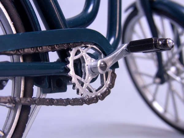 ”青チャリ”のディテールは原型師の独自な解釈とアレンジがかなり入っているようです。独自と言ってもやはり「