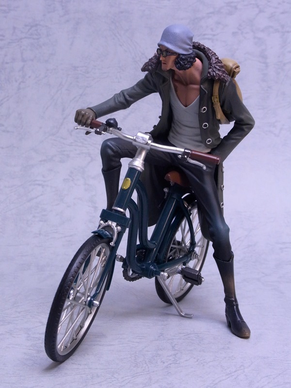 乗り物をフィーチャーしたシリーズなだけあって、自転車はプライズと思えないほど細部まで造り込まれています。クザンフィギュアはこの場合、おまけのはずなのですが、塗装とサイズはグラメン仕様、原型もグラメンの看板原型師が手がけたということで、