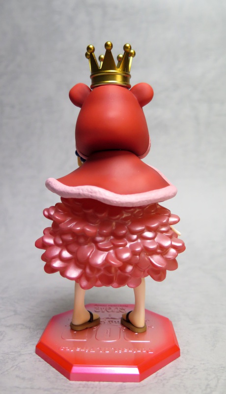 羽つきケープ、フードつきヘッド、グレープつき左腕パーツ差し替え。台座・冠込みで14センチです。前傾姿勢になっているのは、ケープの重さを加味して重心を中心に戻すために設計されているようです。それでも重心は後ろにあるので自立はできません。