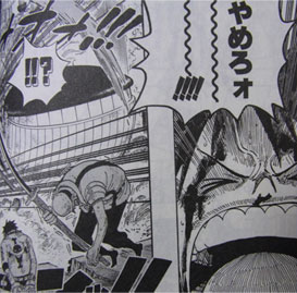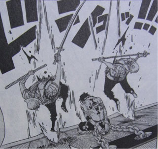 569話ではこの他1ページと17ページで、処刑執行人の姿が見られます。これもおそらくスリー兄さんでしょう。