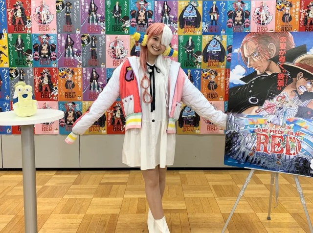 司会進行役にフジテレビアナウンサーの渡邊渚さんがウタのコスプレで出演しました。