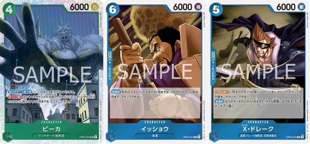 どちらも今のところ採用率が低いカードですが、「ガープ」は新リーダーの青緑ゾロ&サンジと相性が良いので、私は採用しました。