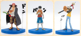 前回のルフィ、エース、白ひげの第二弾です。出来は悪いのでしょうけども、16点鐘のルフィと麦わら帽子を受け取るローは立体化されておらず、今のところ予定もないので、実物見て判断しようかなと・。・