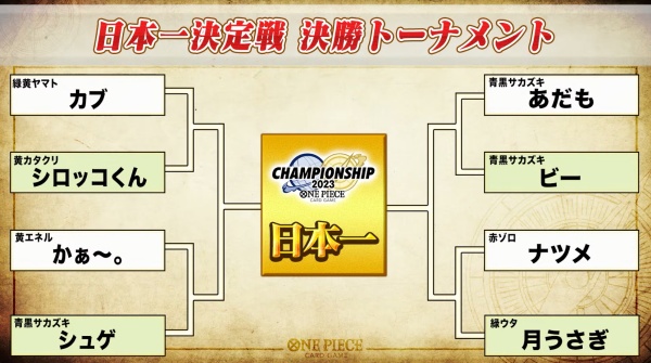 この記事はバンダイのトレーディングカードゲーム(TCG)「ONE PIECE CARD GAME」のエンジョイ勢の対戦日記的な何かです。今回は先日開催されたチャンピオンシップ2023 日本一決定戦の模様についてです。