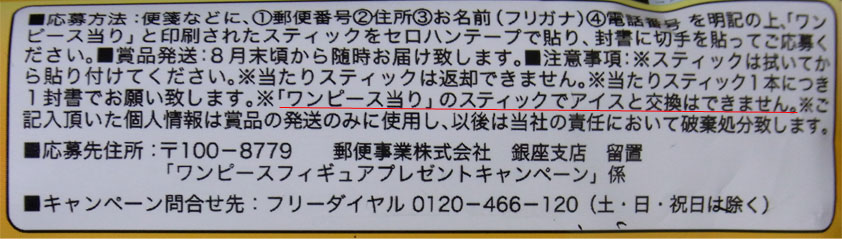 ※「ワンピース当り」のスティックでアイスと交換はできません。