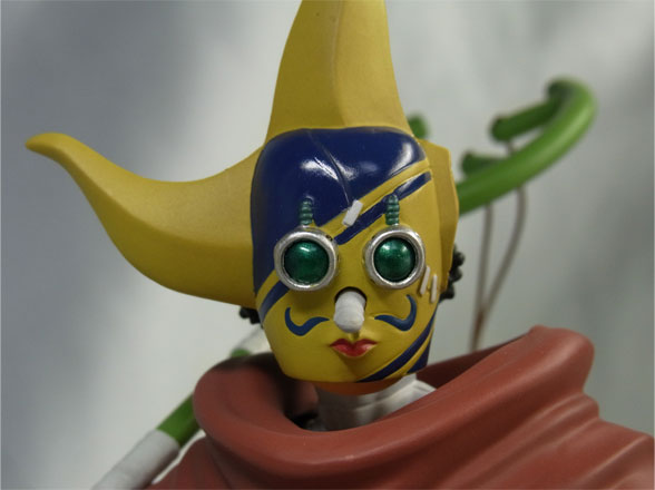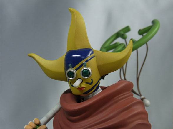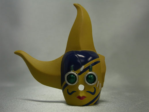 割れて継ぎ接ぎされたそげキングのお面。お面の下からアゴが見えているところも原作に忠実です。