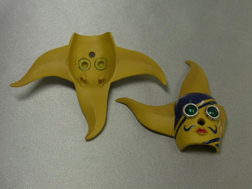 お面は頭部のゴーグル部分でダボ接着するようになっています。カッチリはまるのがいい感じです。